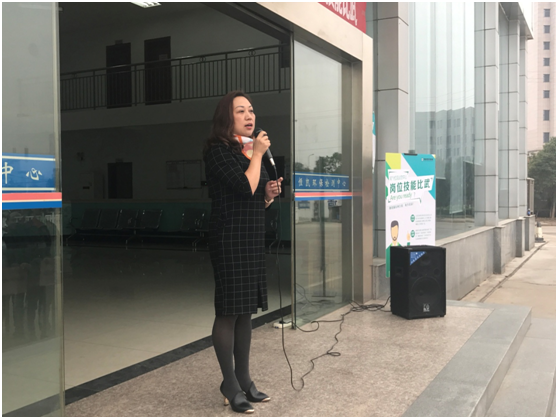 湖南恒凱工會(huì)主席尾氣運(yùn)營中心總經(jīng)理陳敏為技能比賽啟動(dòng)儀式致辭